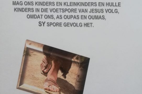 Dit het ons op ‘n reis geneem waartydens ons God se gedagtes hieroor begin raaksien het. Verrassende Bybelse momente, waar ons God se bedoeling met Oupas en Oumas kon leer ken, het gevolg. Ons kon ook kontak maak met vennote regoor die wêreld, wat met dieselfde reis besig is. Op ons reis soek ons na God se spore en ons volg Hom in die pad wat Hy vir ons lewens